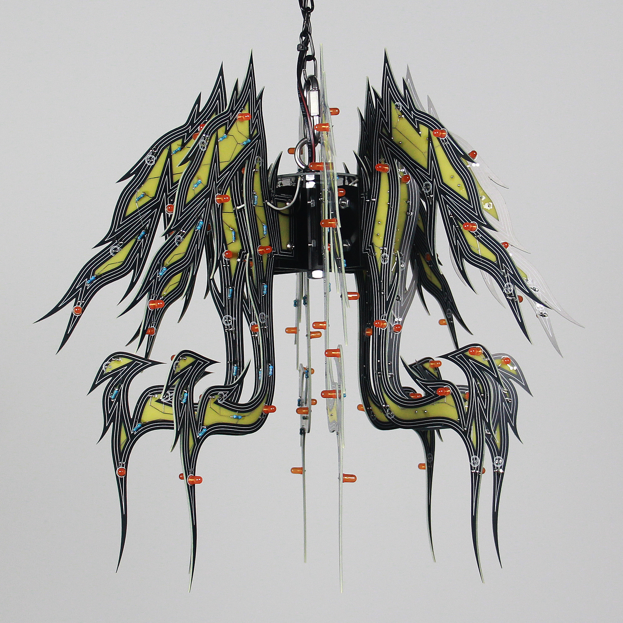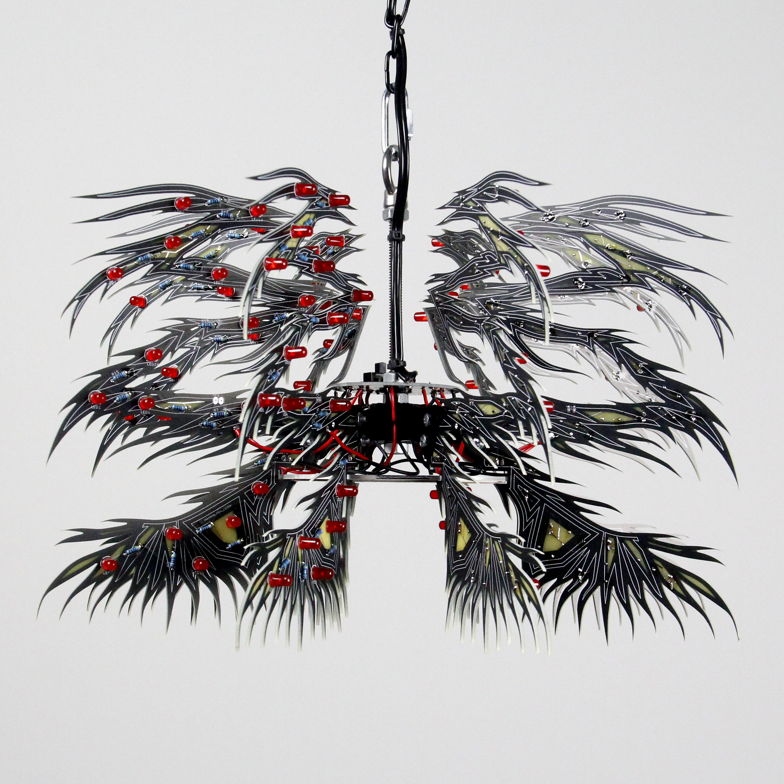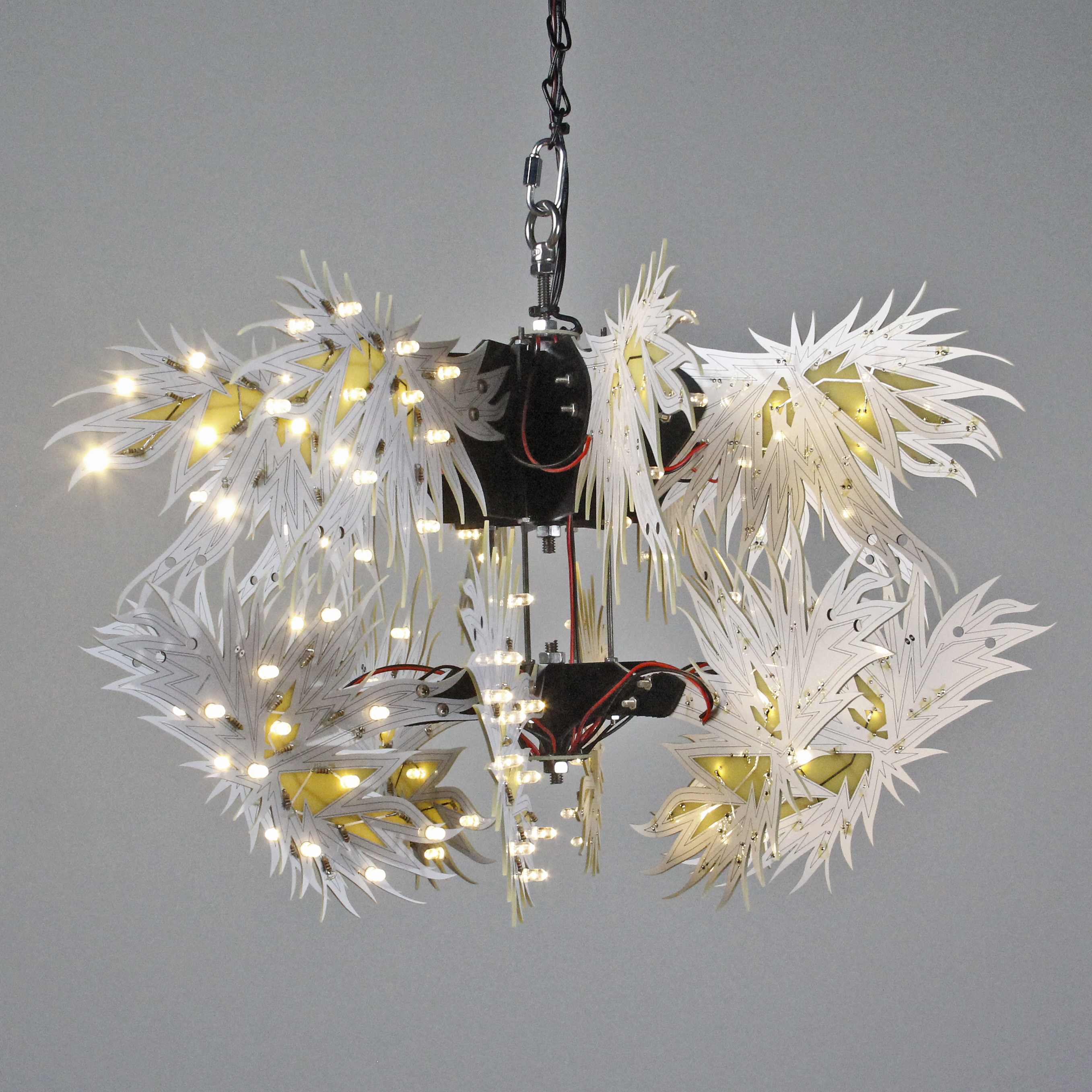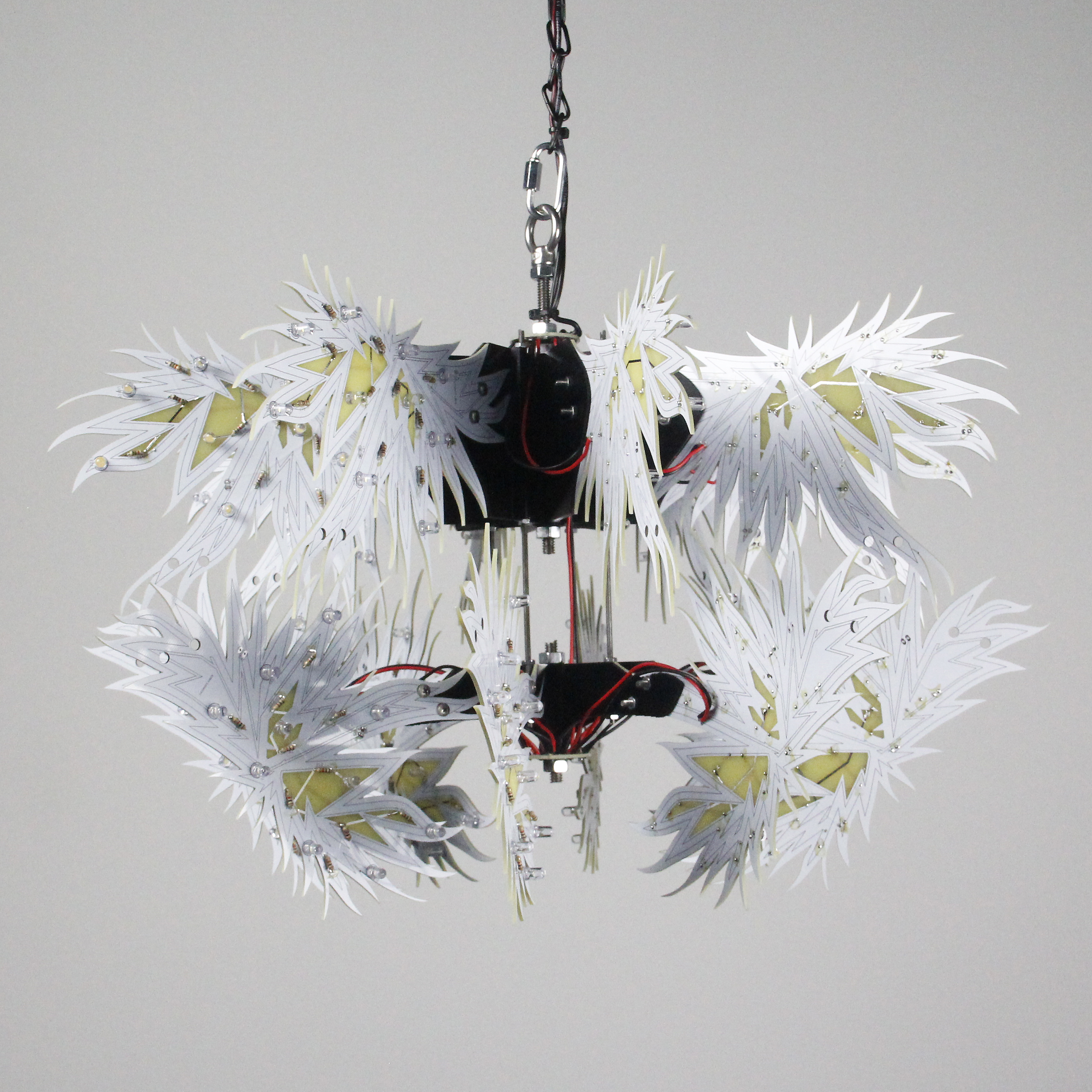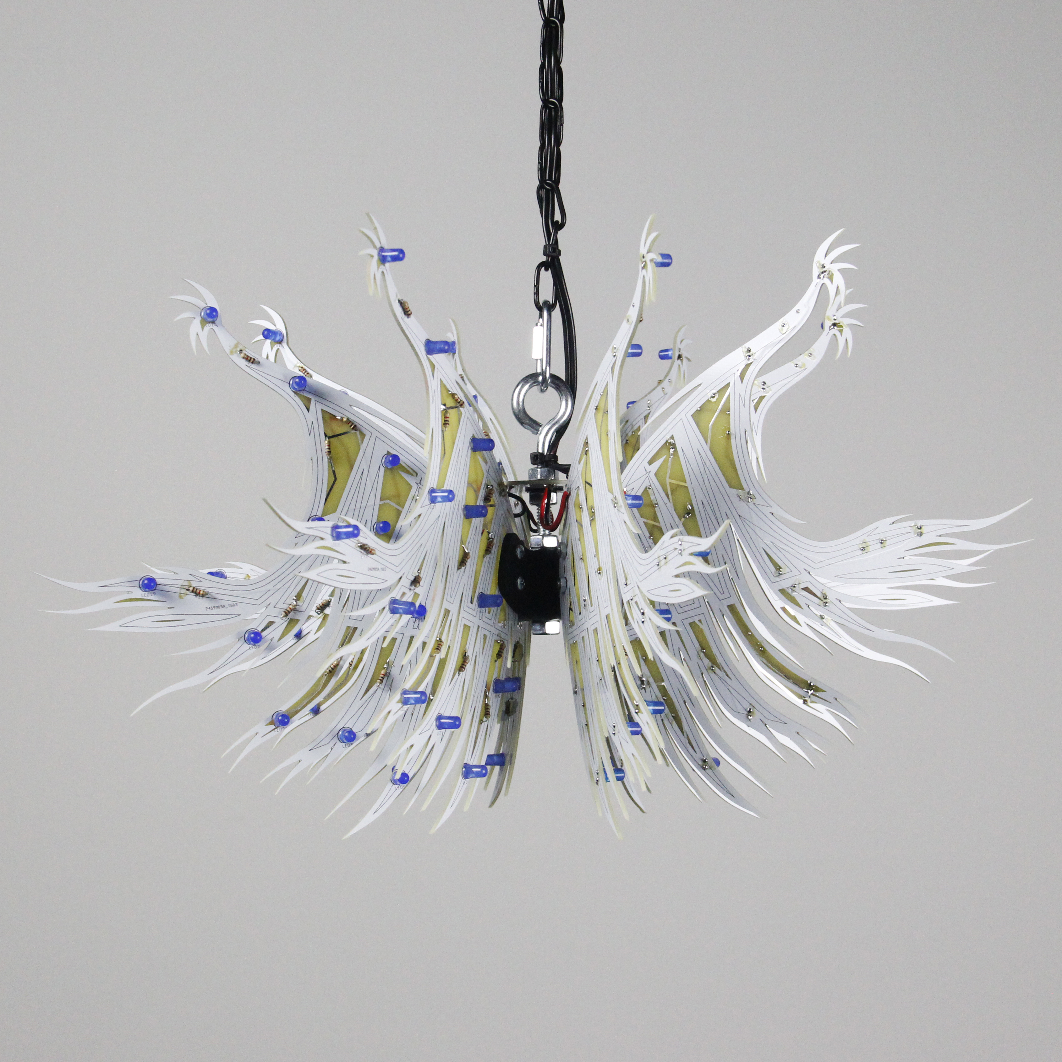 Material: printed circuit boards, electronic components, signal cables, custom 3d printed hardware, power supplies, chain, miscellaneous hardware