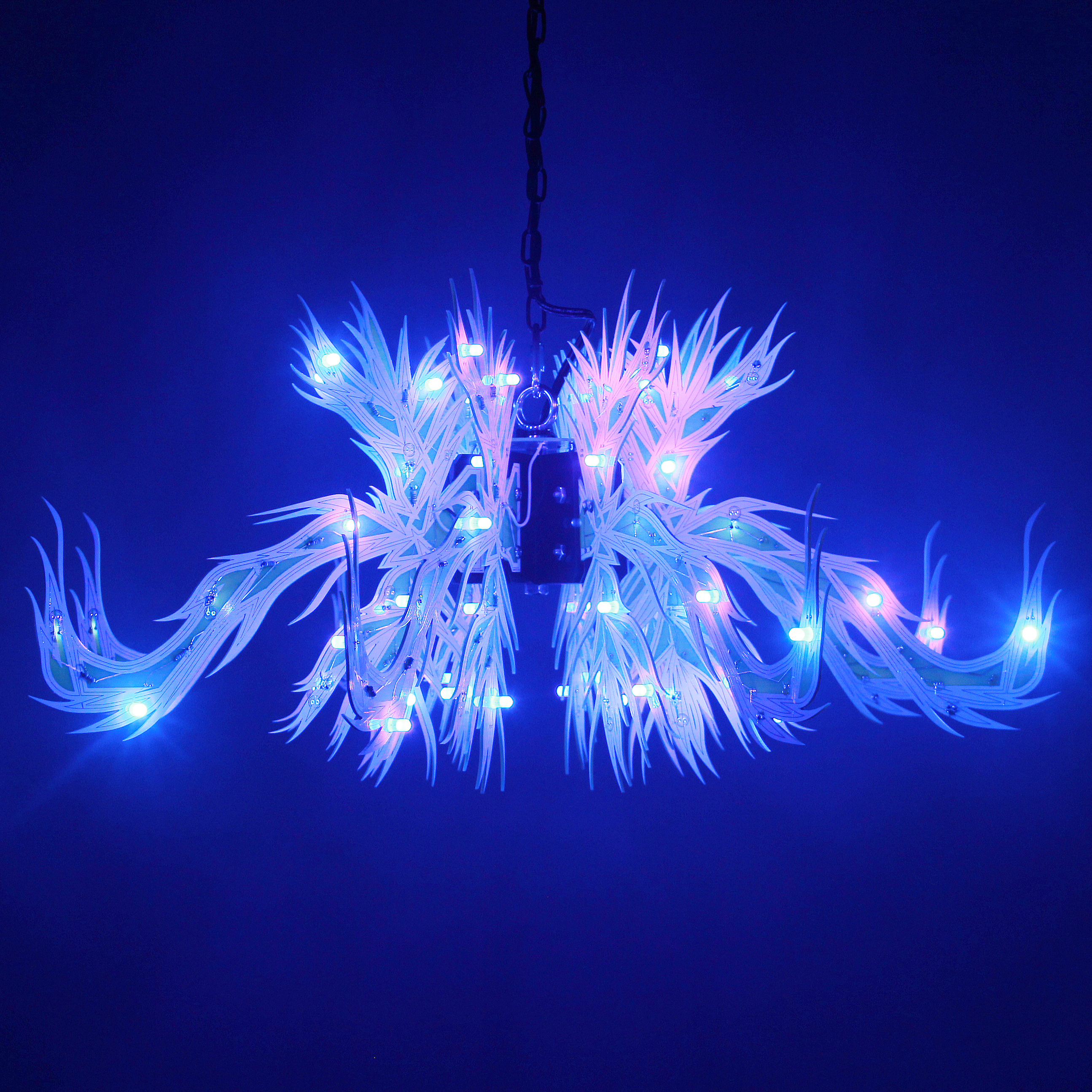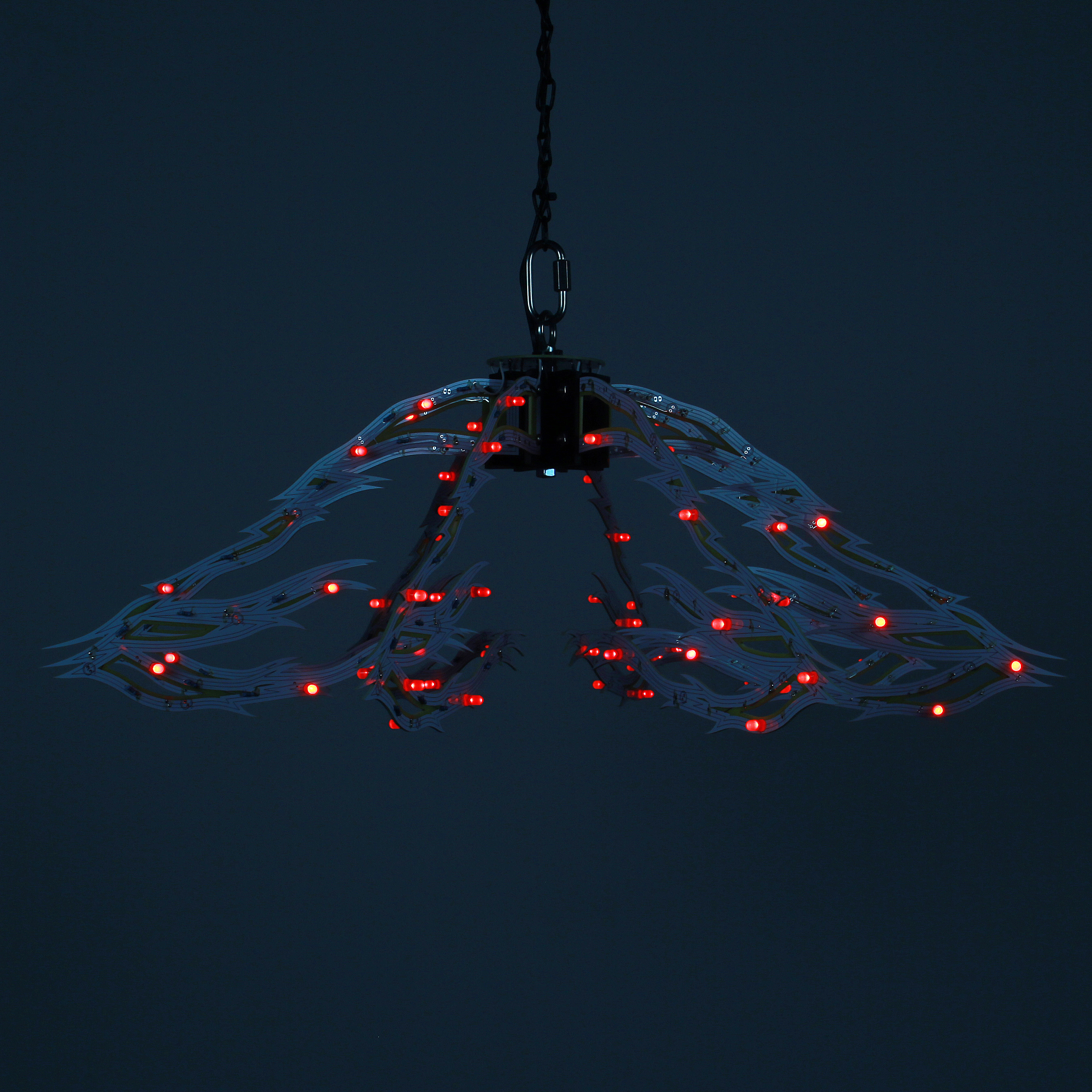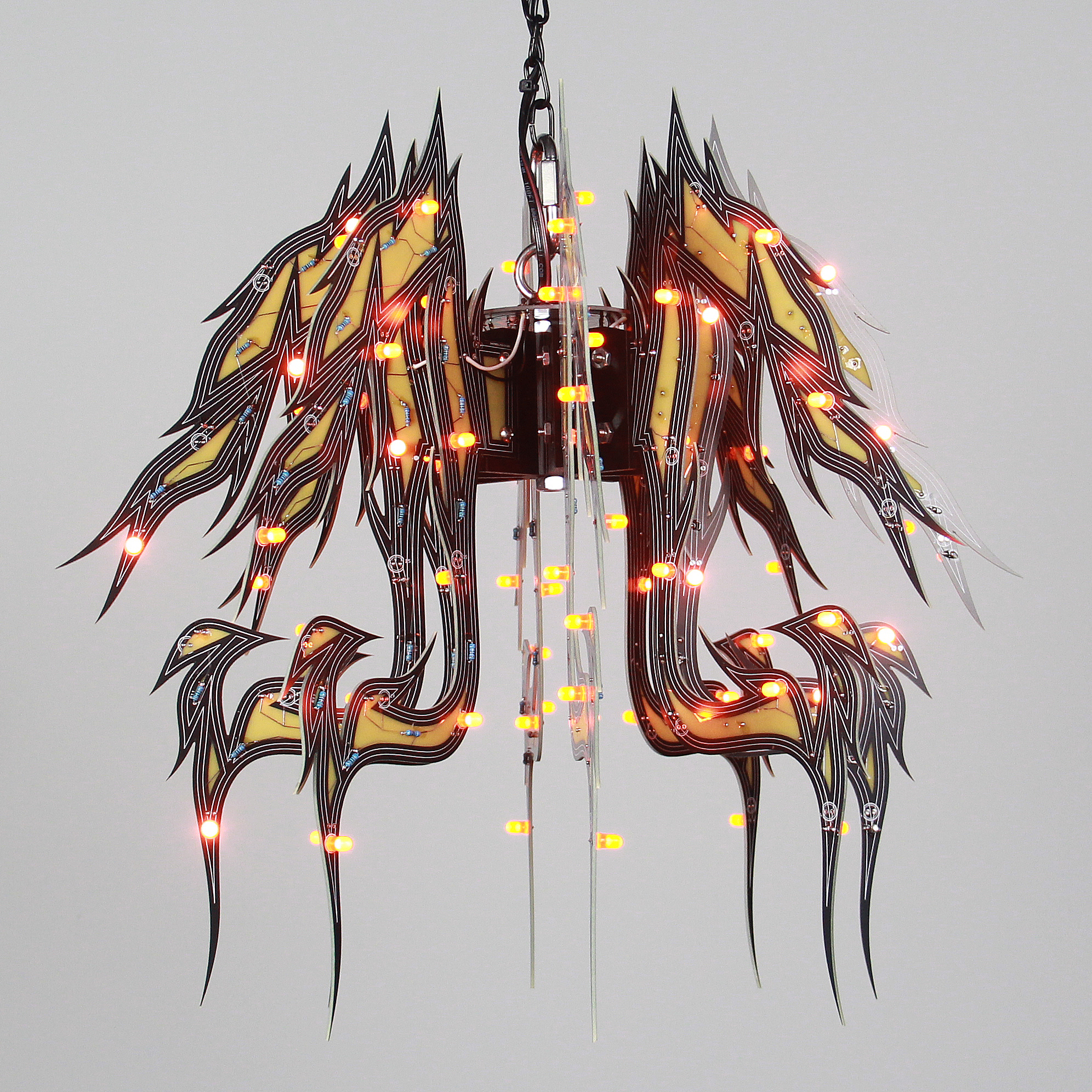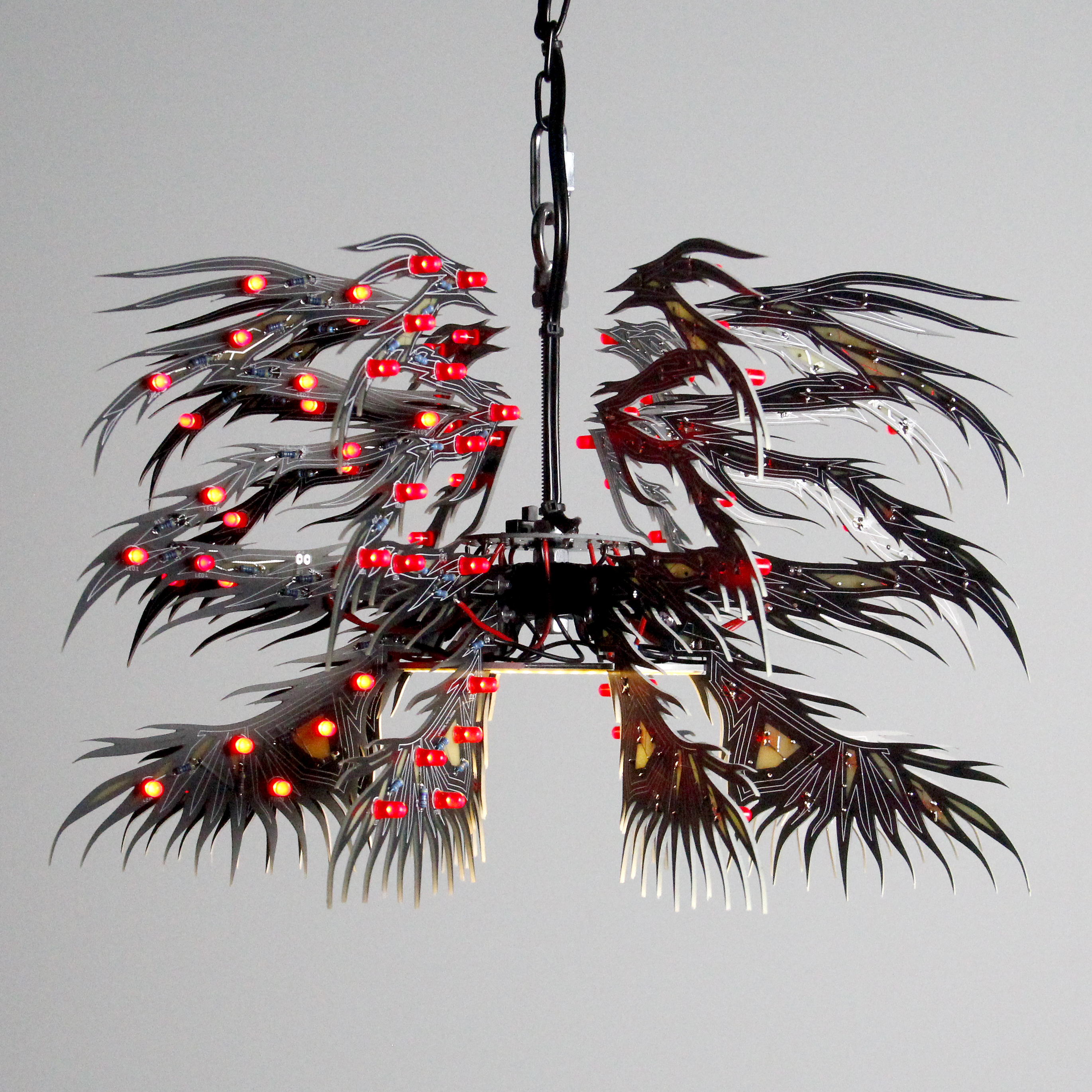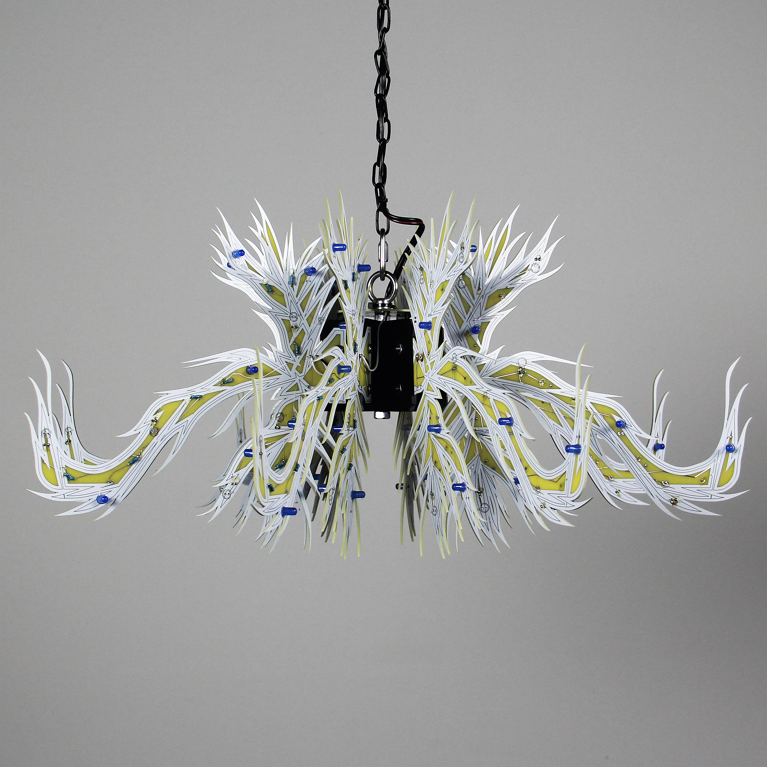 Material: printed circuit boards, electronic components, signal cables, custom 3d printed hardware, power supplies, chain, miscellaneous hardware