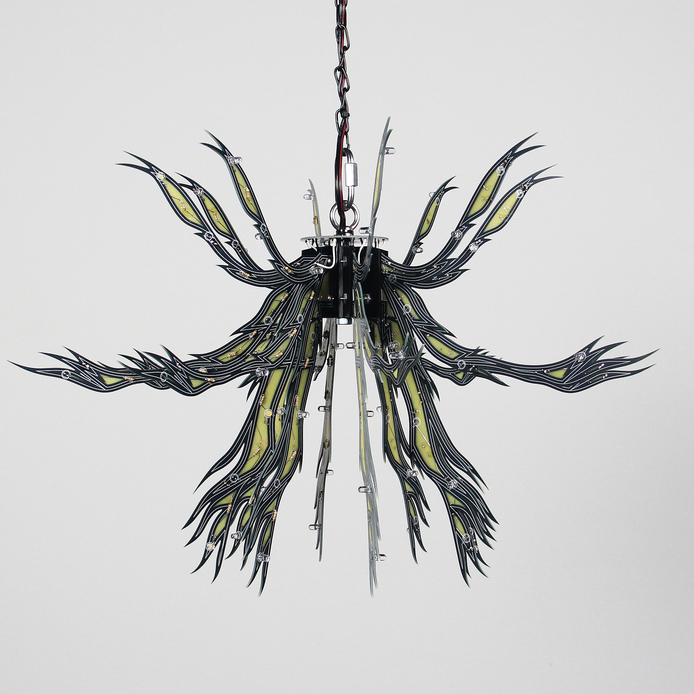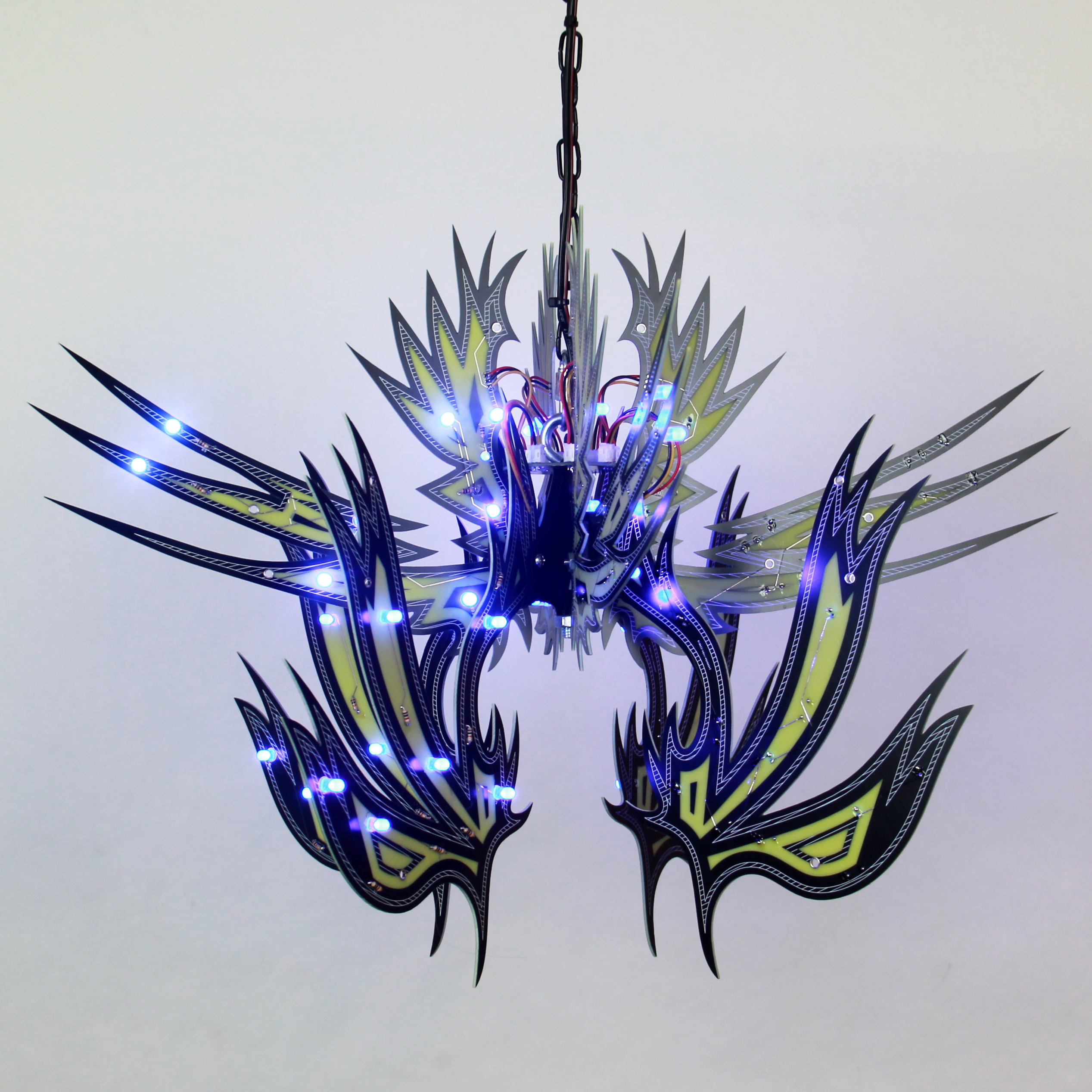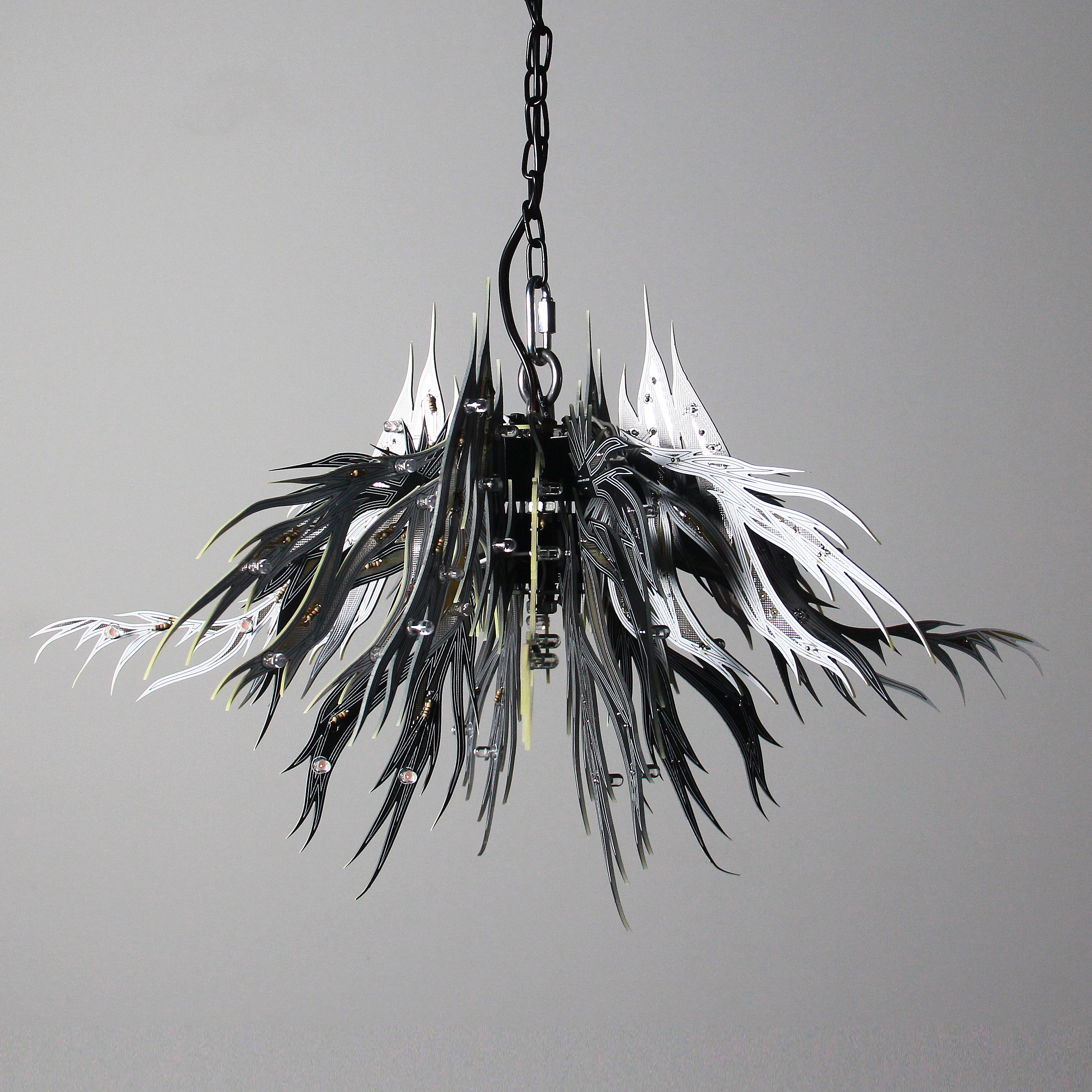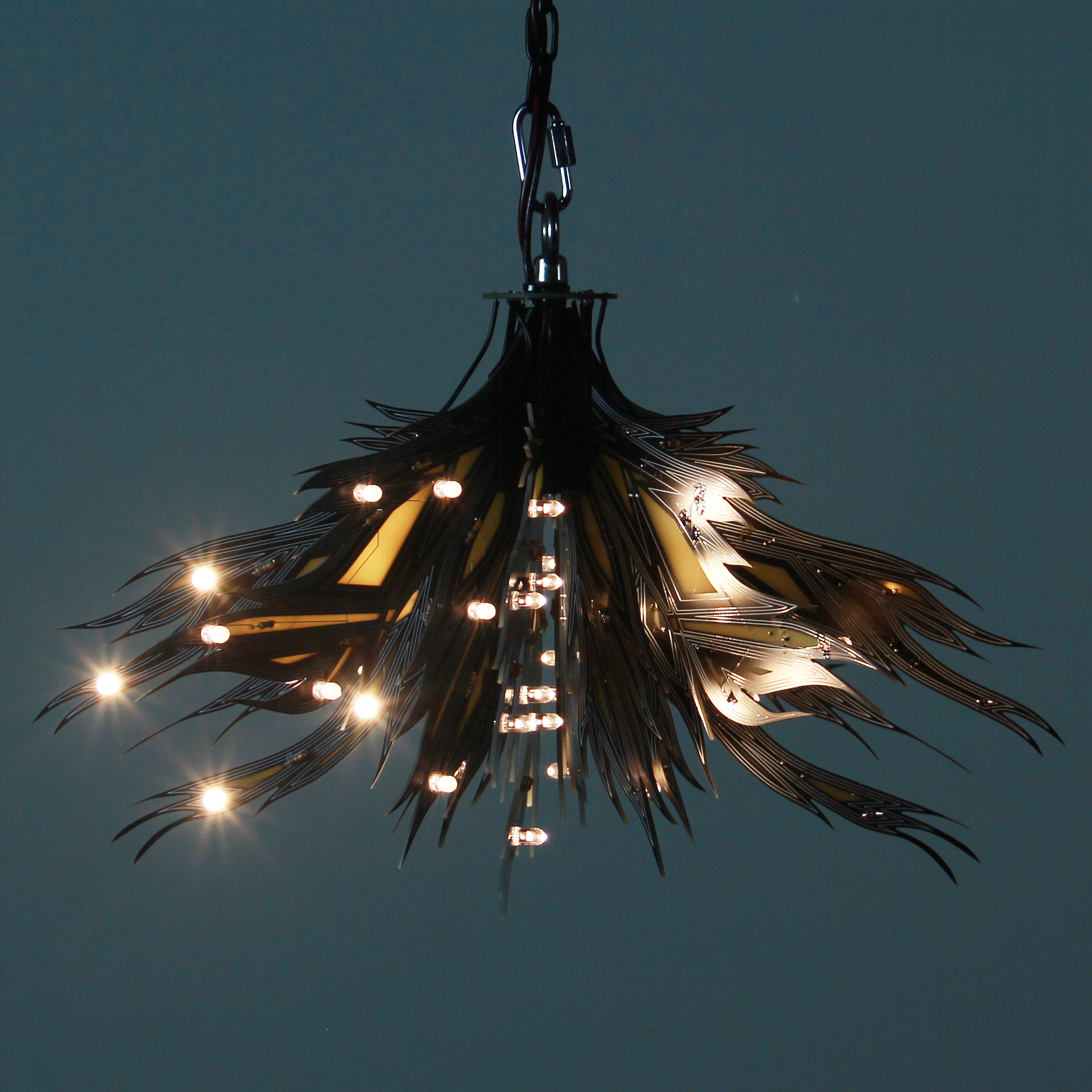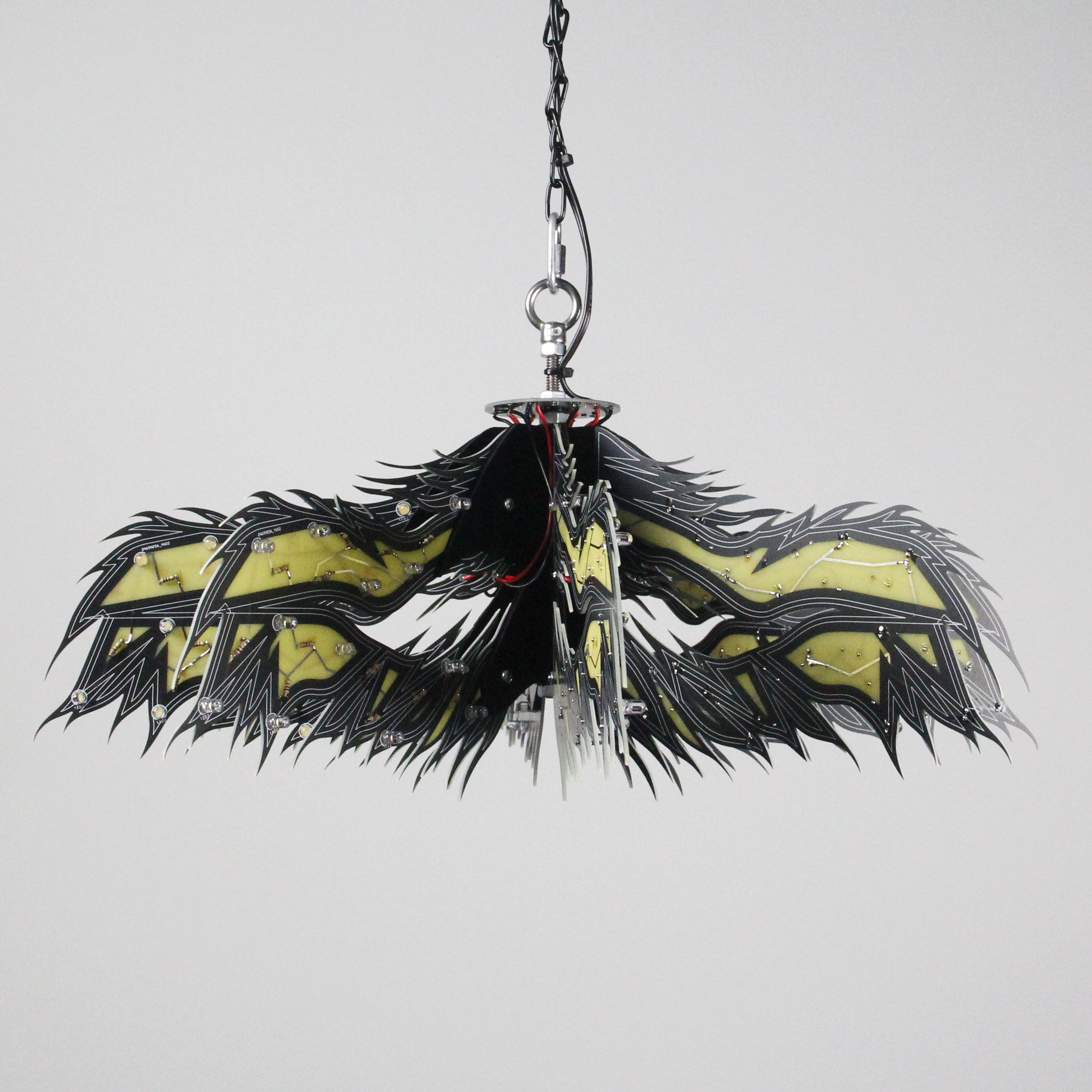 Material: printed circuit boards, electronic components, signal cables, custom 3d printed hardware, power supplies, chain, miscellaneous hardware