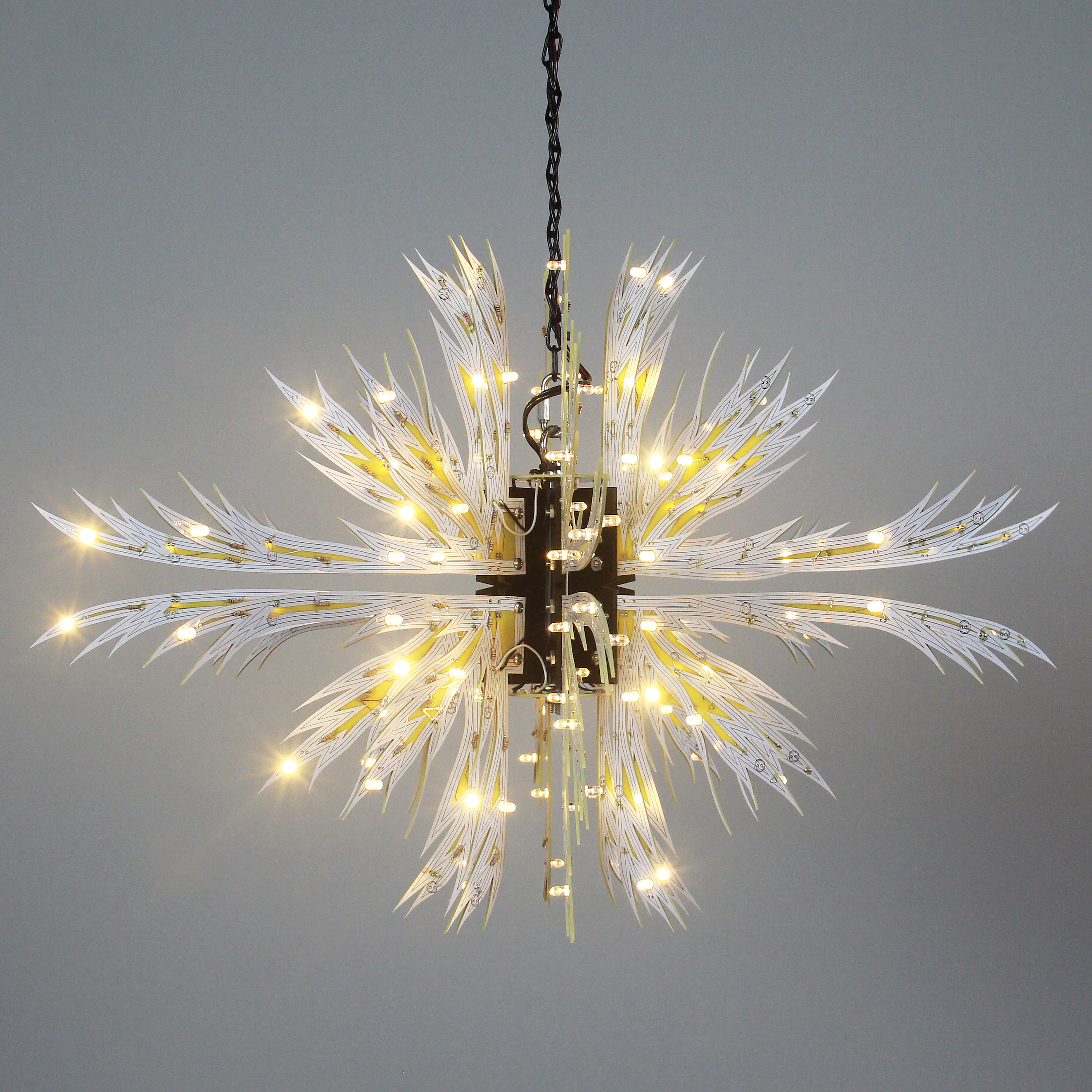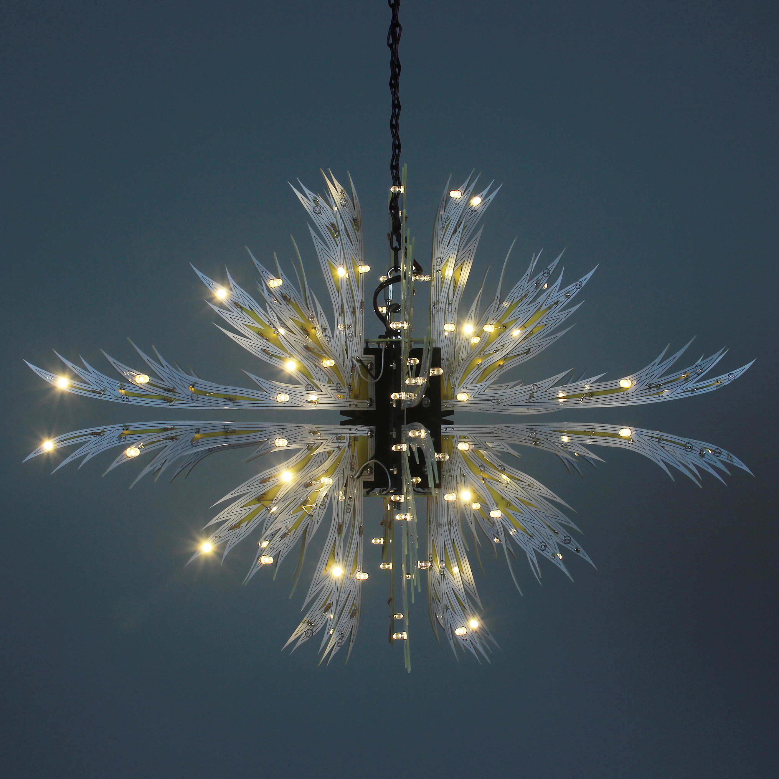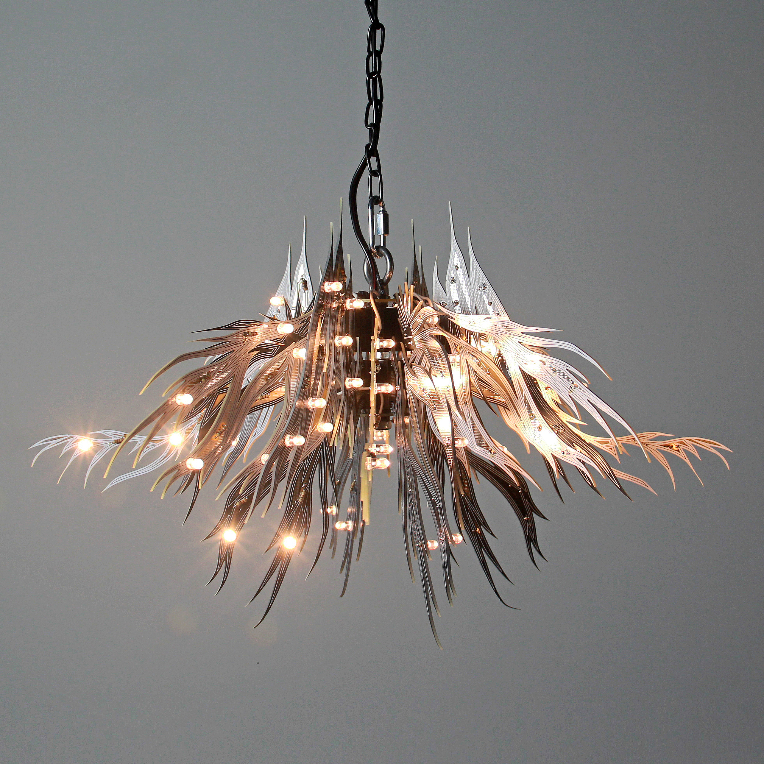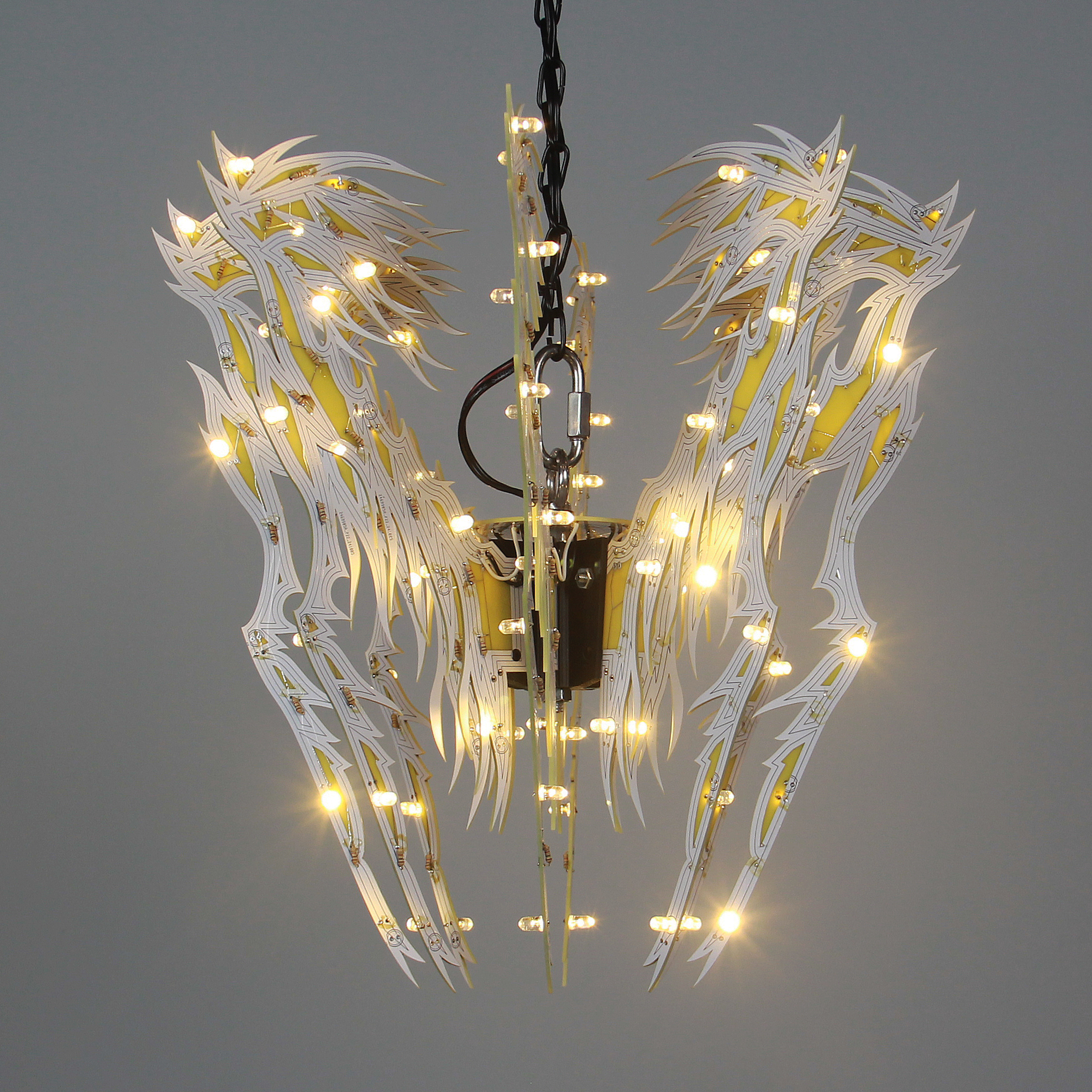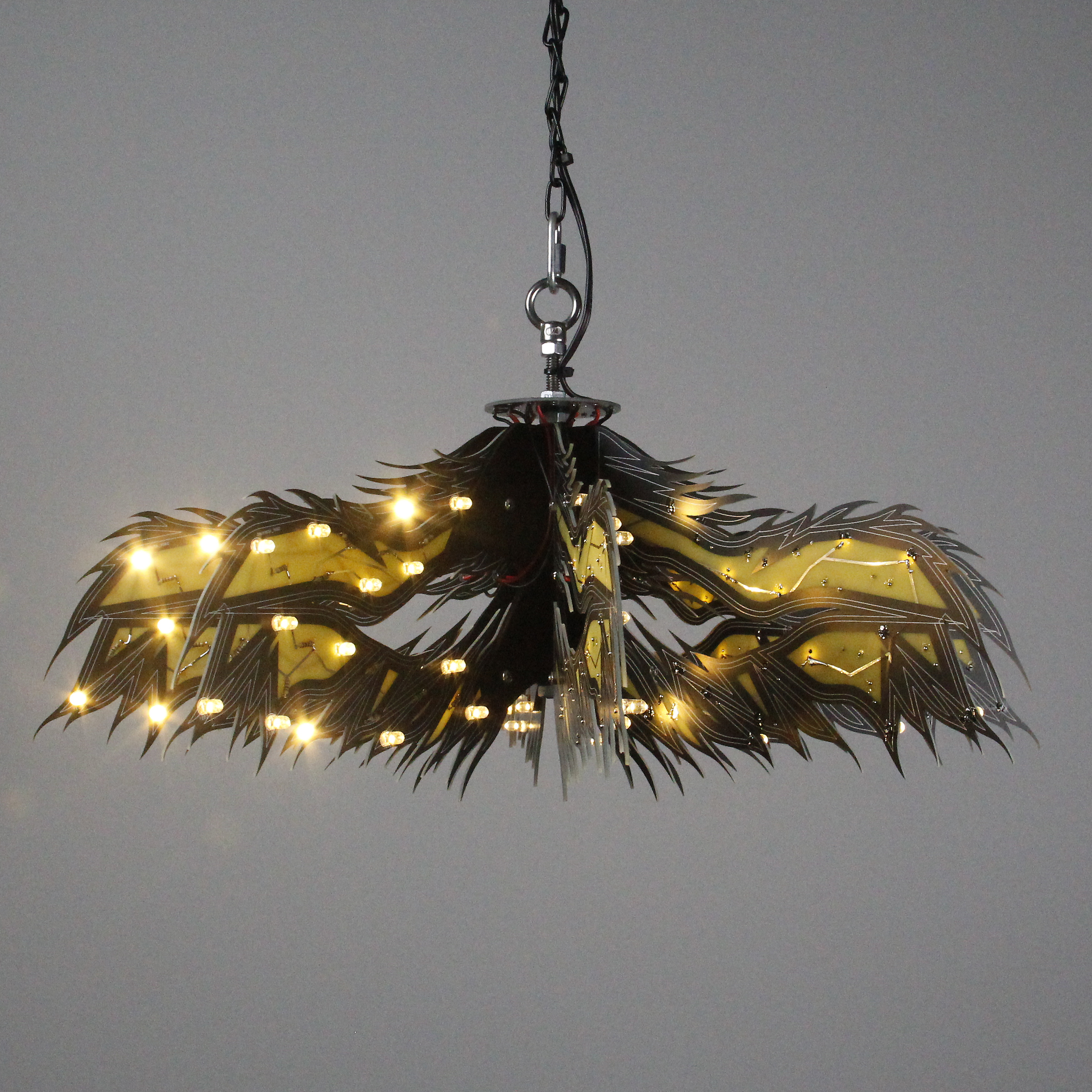 Material: printed circuit boards, electronic components, signal cables, custom 3d printed hardware, power supplies, chain, miscellaneous hardware