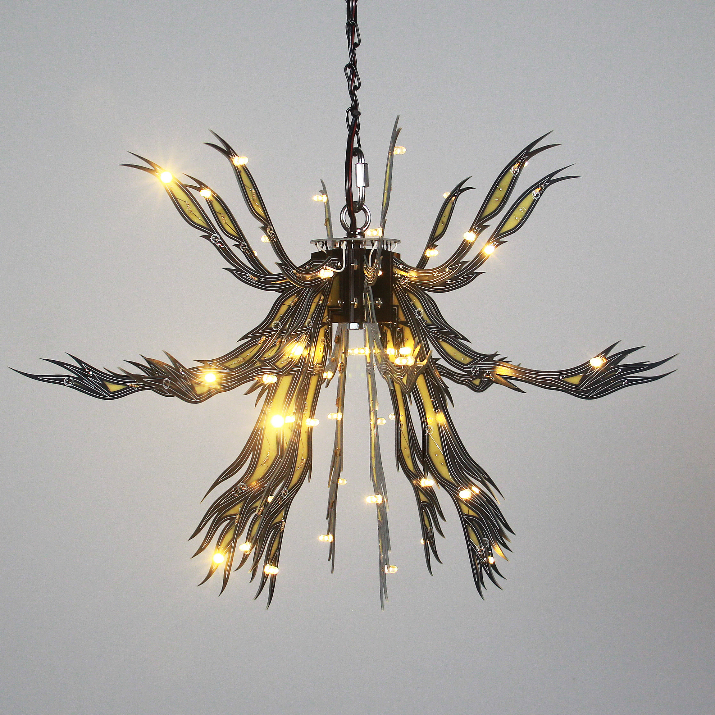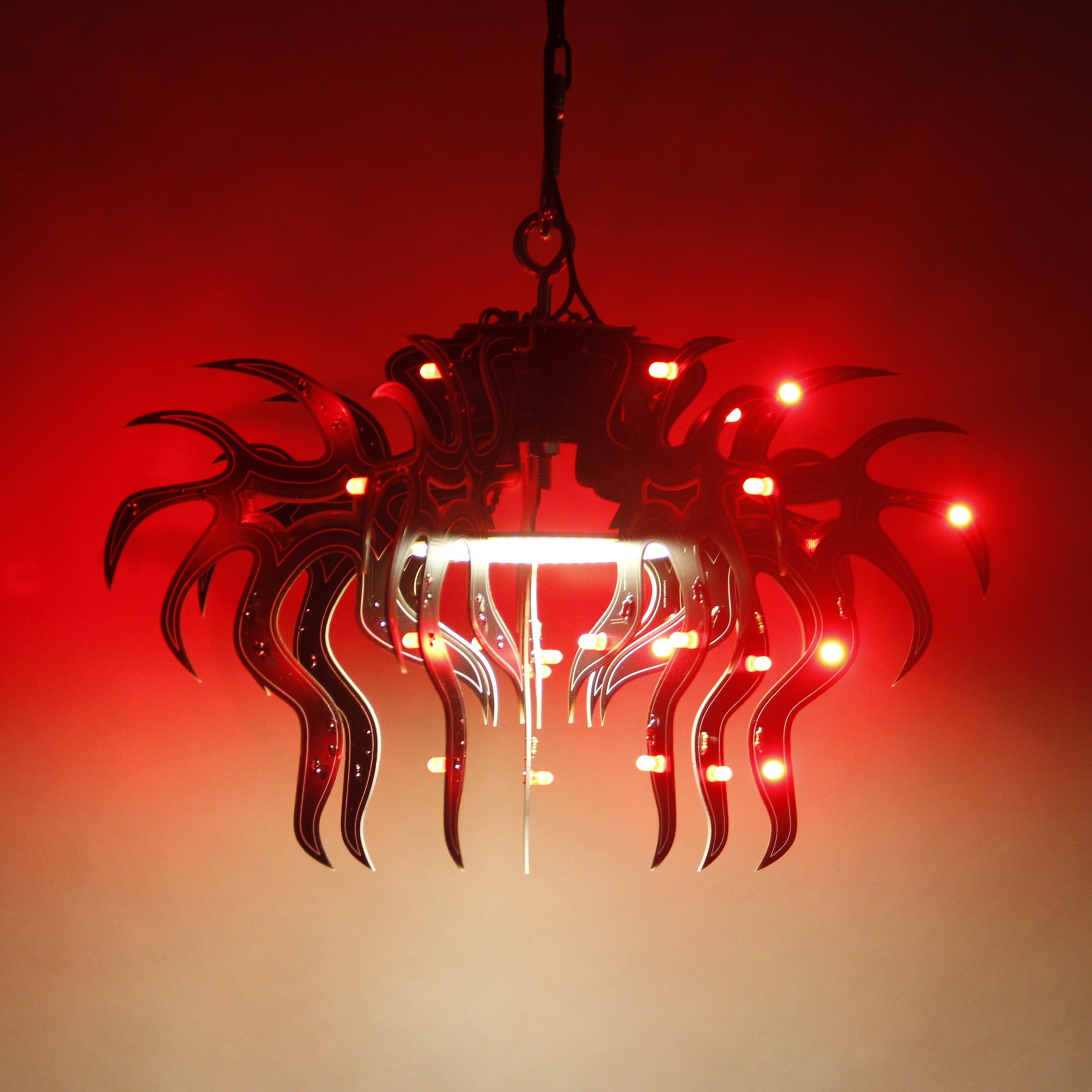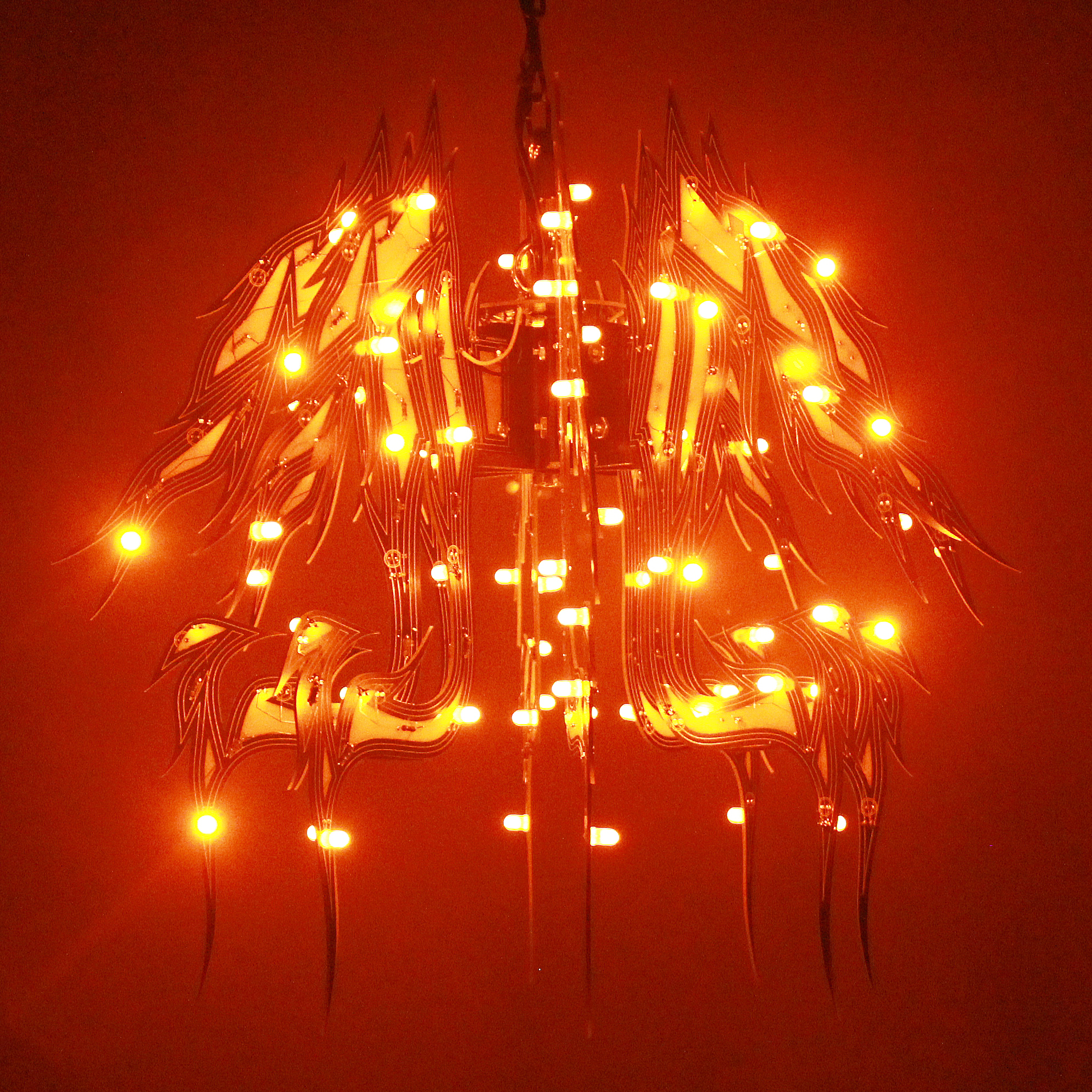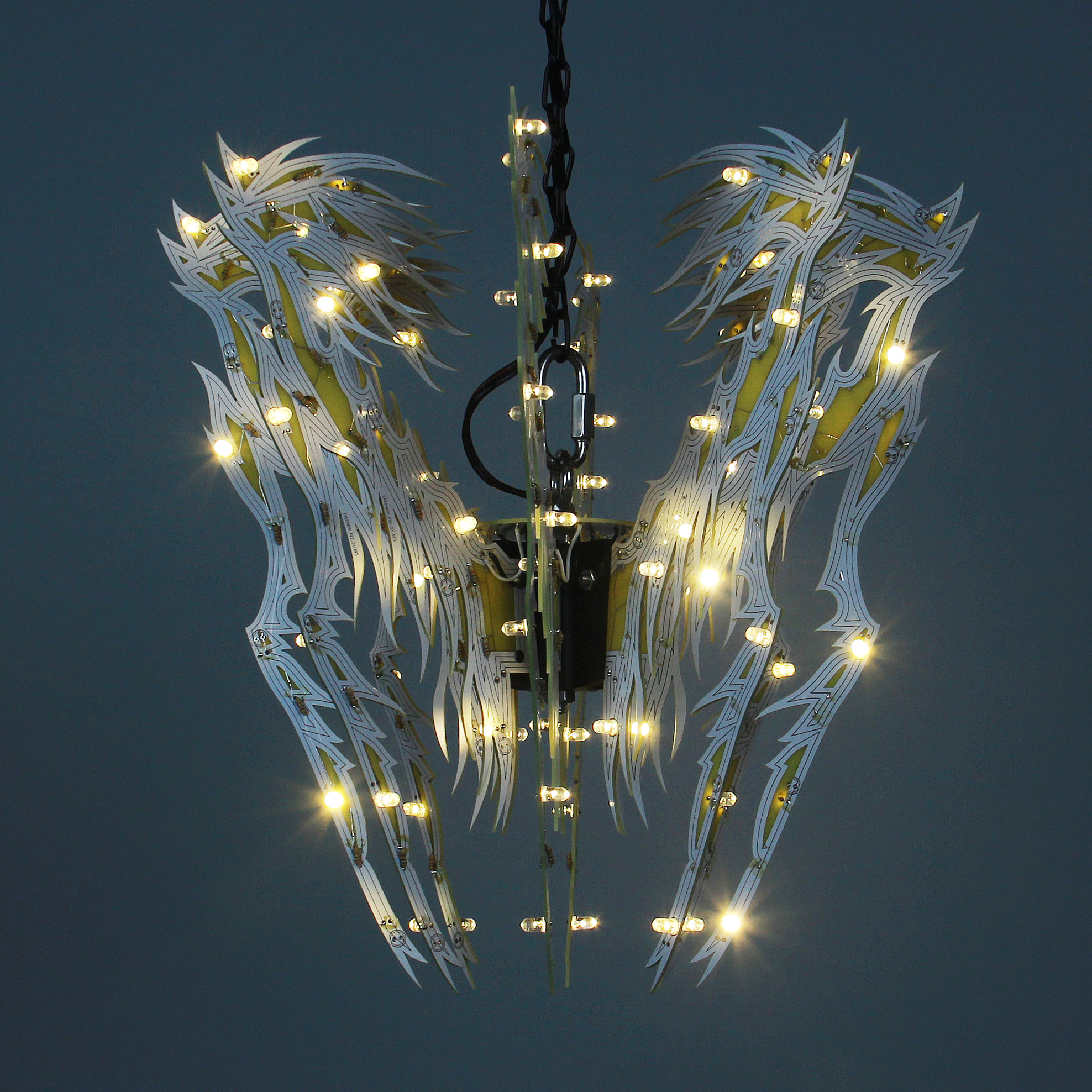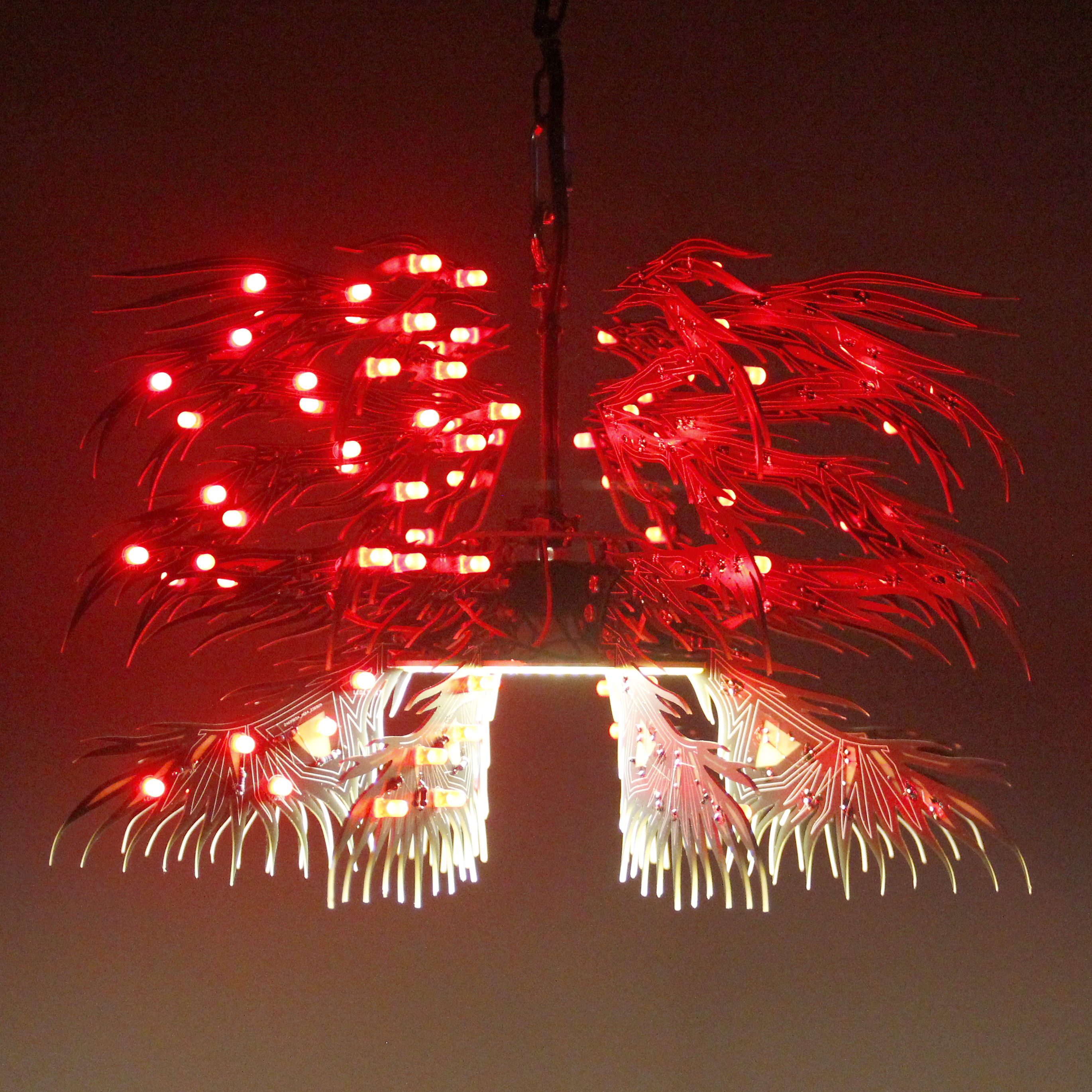 Material: printed circuit boards, electronic components, signal cables, custom 3d printed hardware, power supplies, chain, miscellaneous hardware