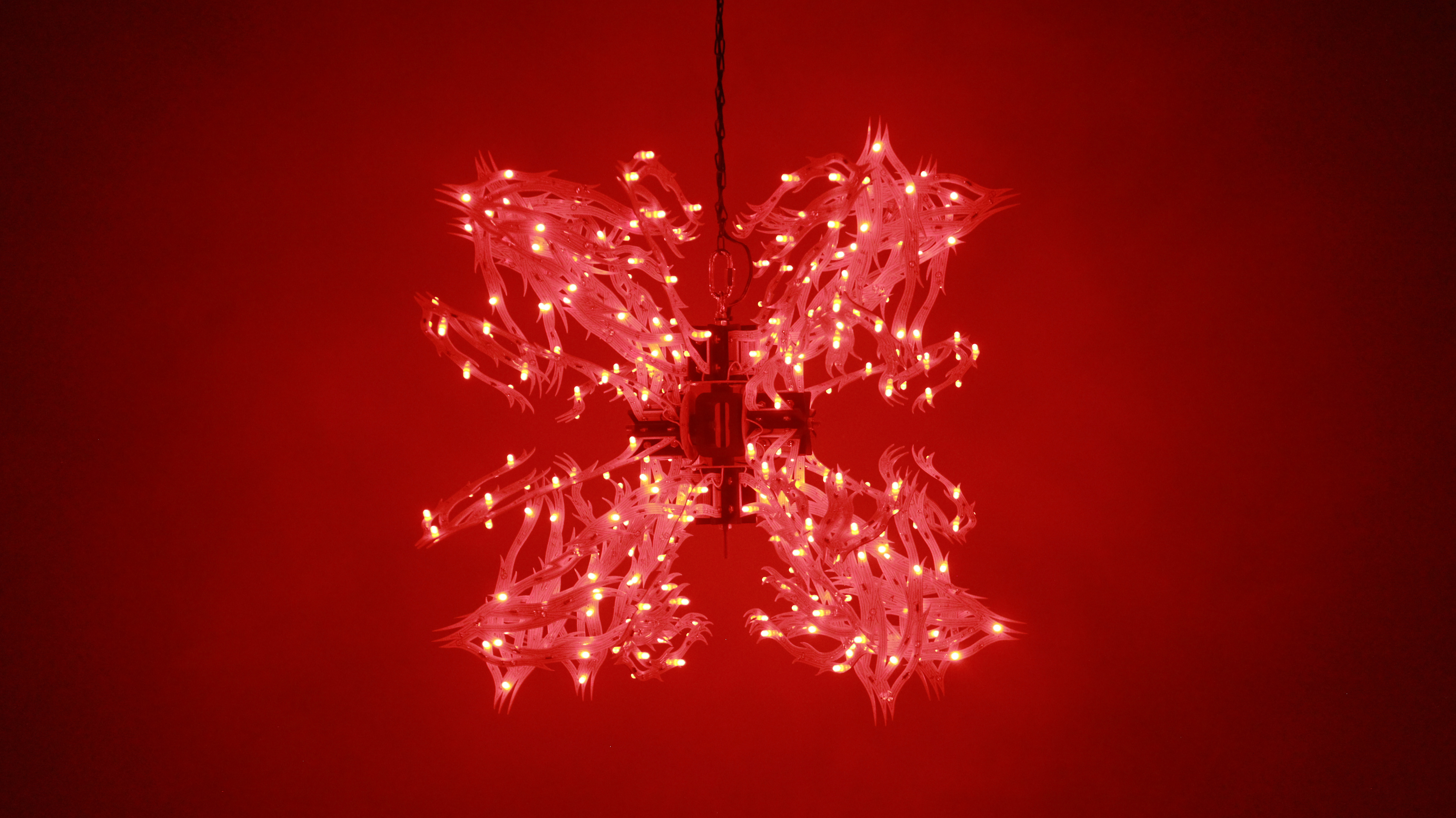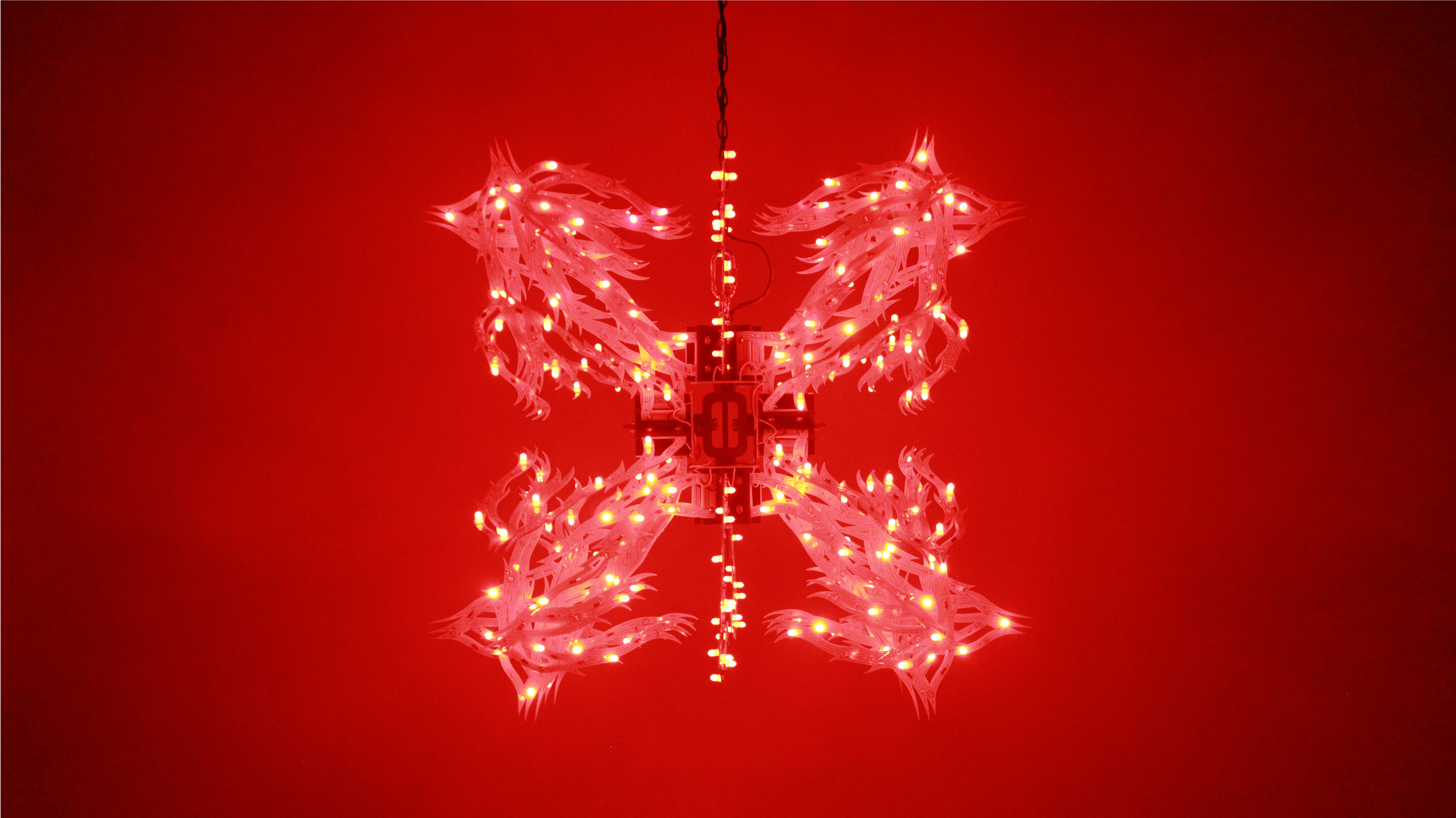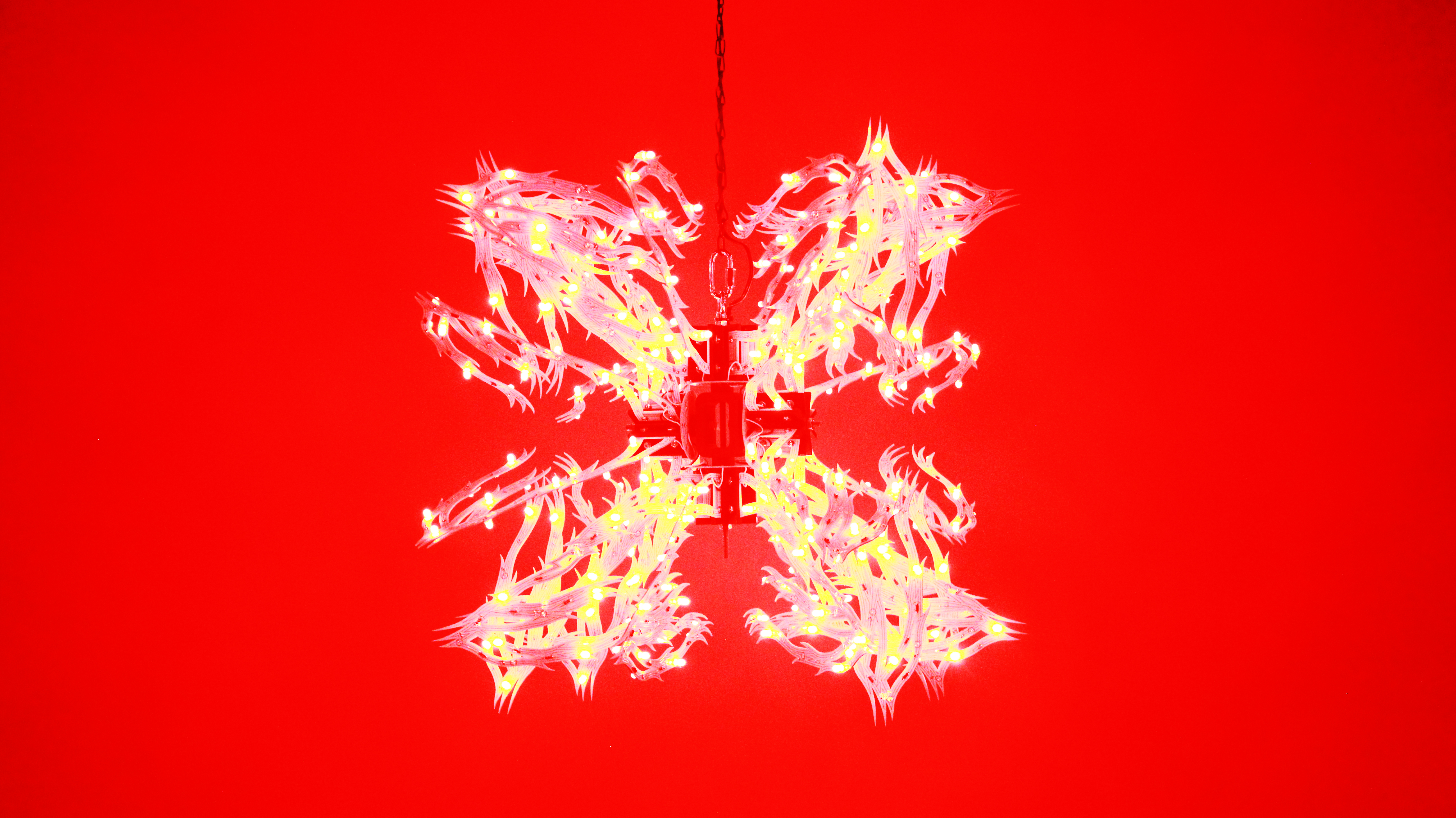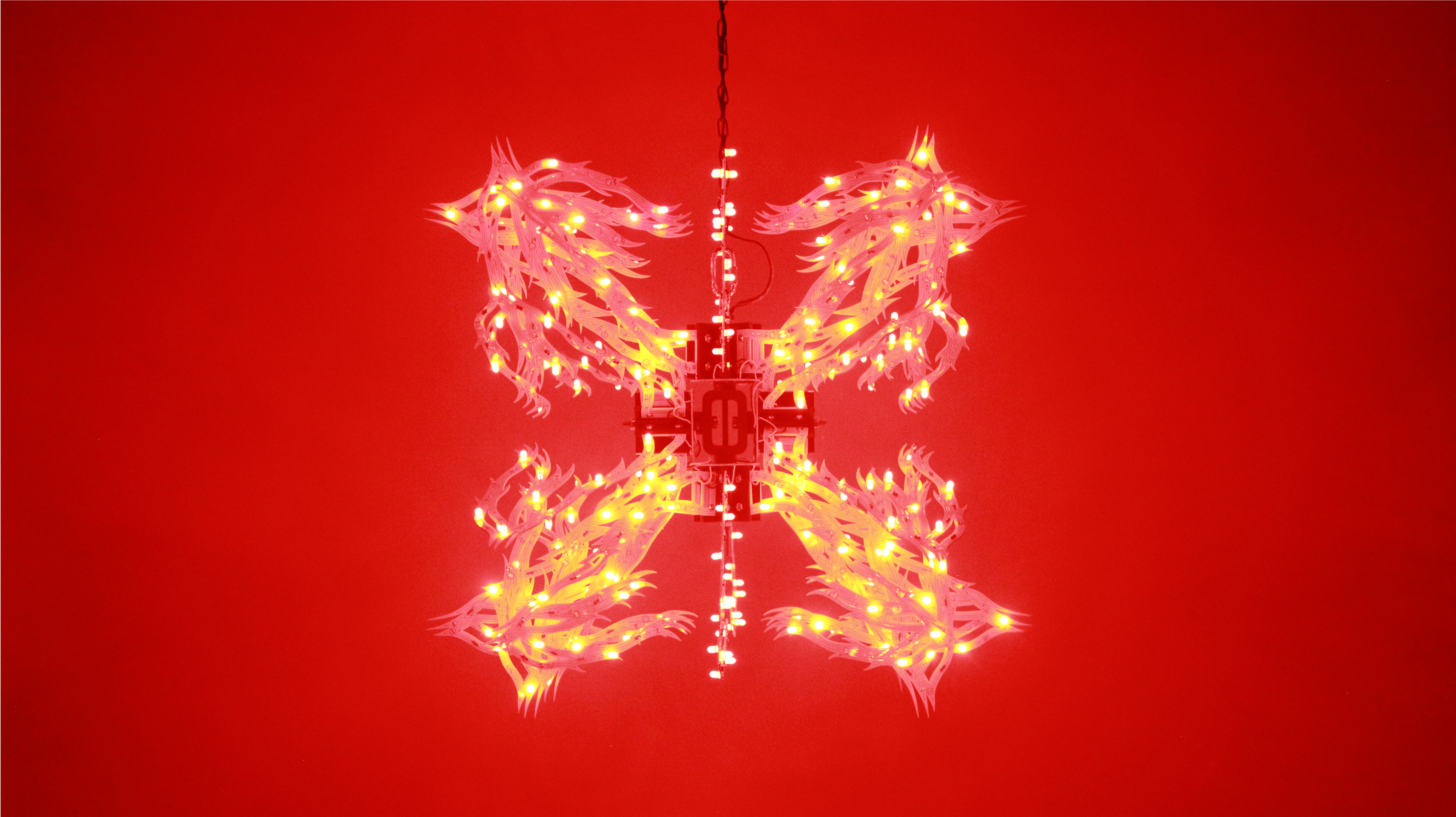 Vessel 6, 2025; 22in x 24in x 24in; Material: printed circuit boards, electronic components, power supply, chain, miscellaneous hardware